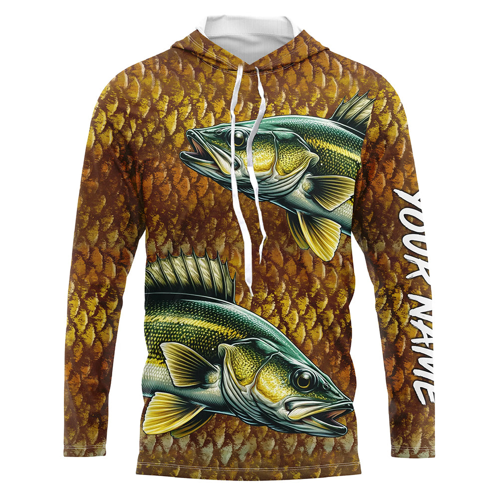 Walleye fishing scales Custom long sleeve Fishing Shirts, personalized freshwater fishing jerseys NQS6800