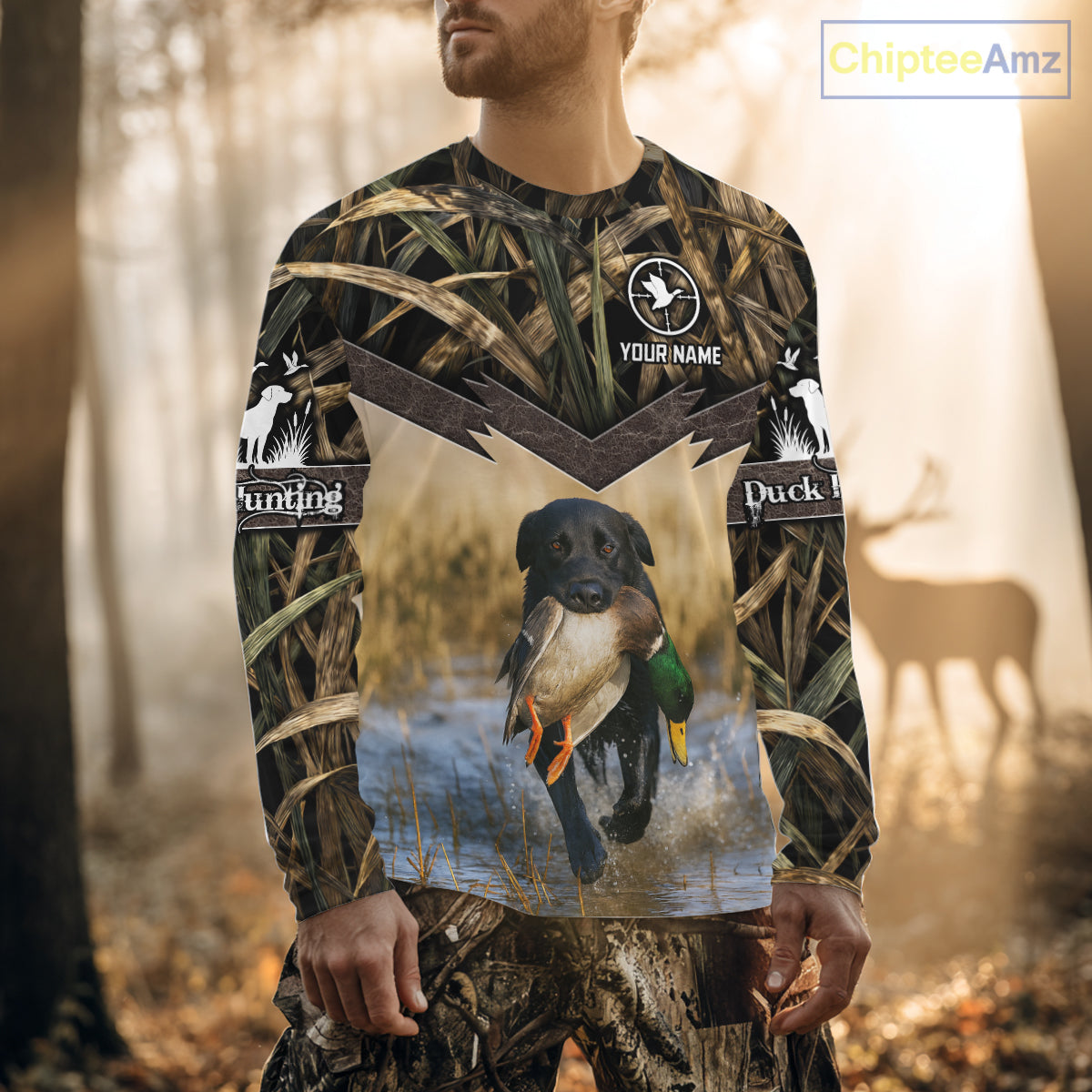 Mallard Duck Waterfowl Hunting Shirt Camo Personalized With Black Lab Dog, Hunting Shirts NHT167