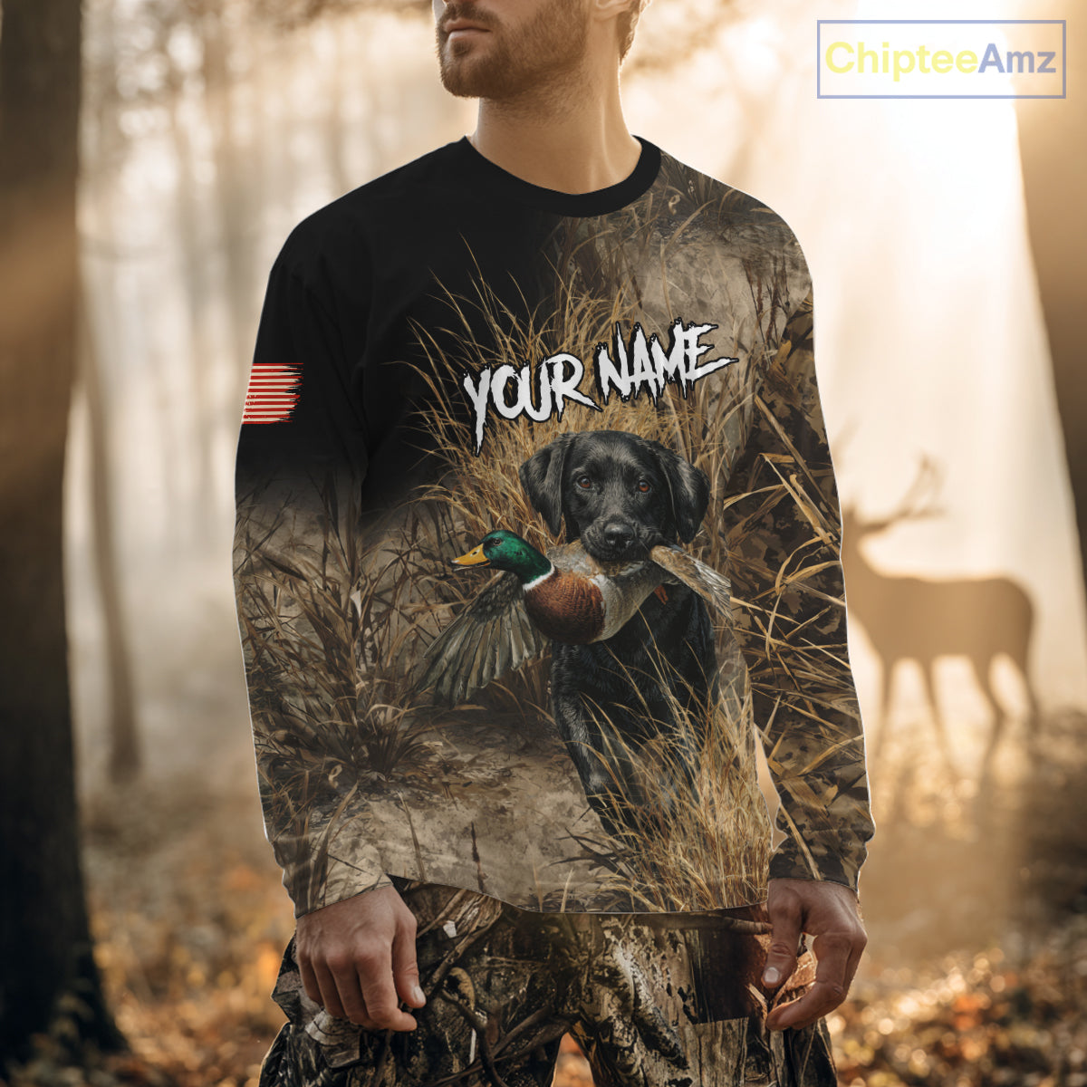 Custom Duck Hunting with Black Labrador Retriever US Flag Camo Shirts, Duck Hunting Clothes for Men NBT130