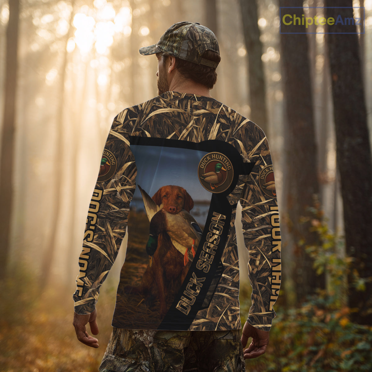 Duck Hunting Shirt Custom Name with Vizsla Dog Camo Hunting Clothes For Hunters NHT153