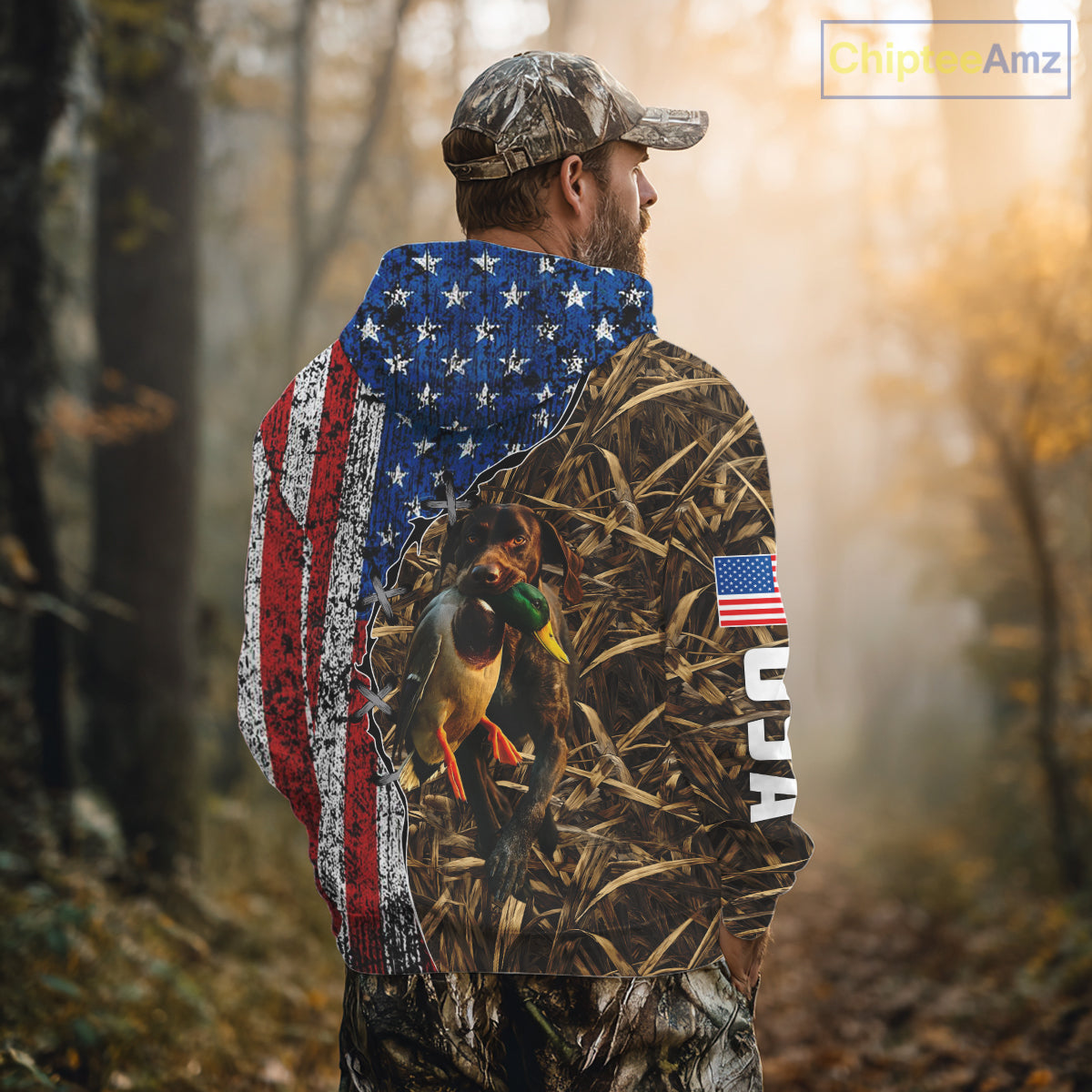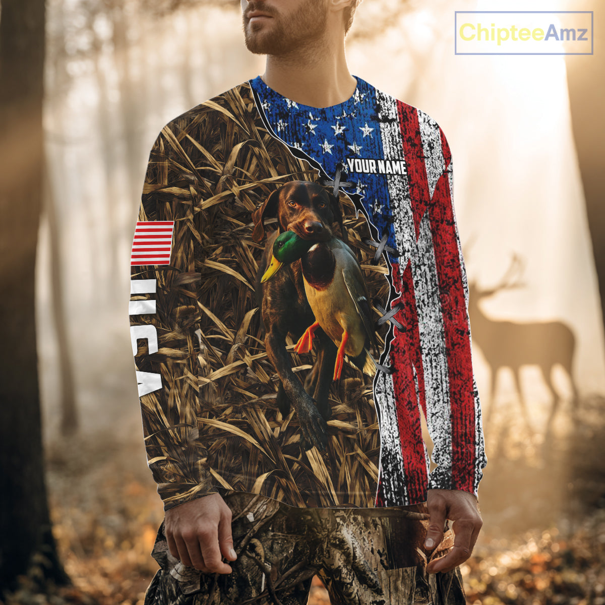 Mallard Duck Hunting Shirt Personalized Camo With German Shorthaired Pointer US Flag Clothes NHT160