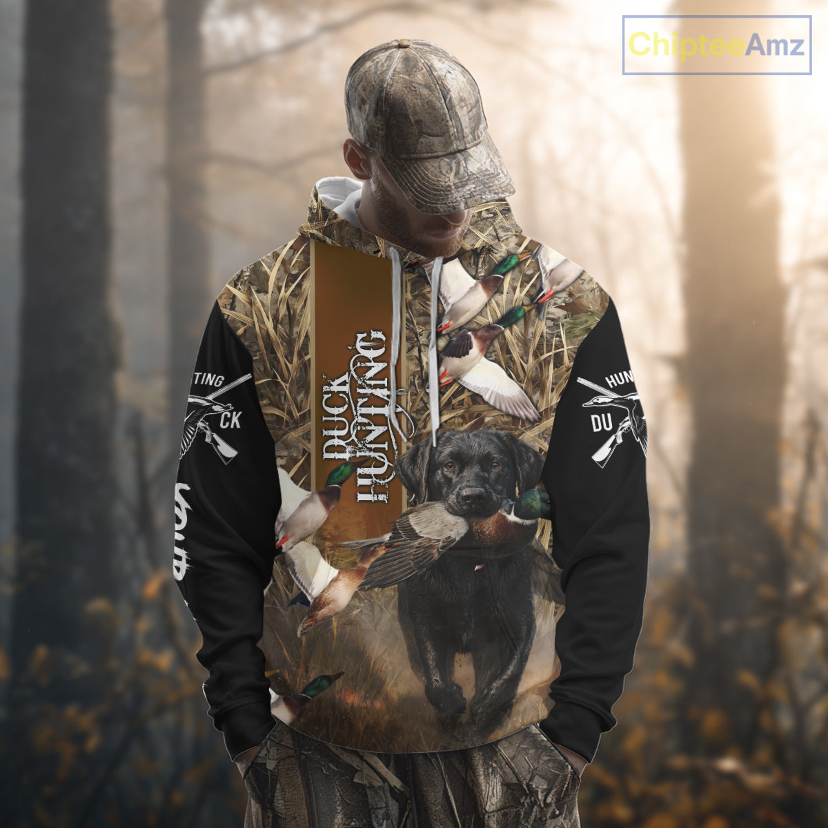Duck Hunting with Black Lab Custom Name 3D All Over Print Camo Shirt, Hunting Gifts for Hunters NBT109