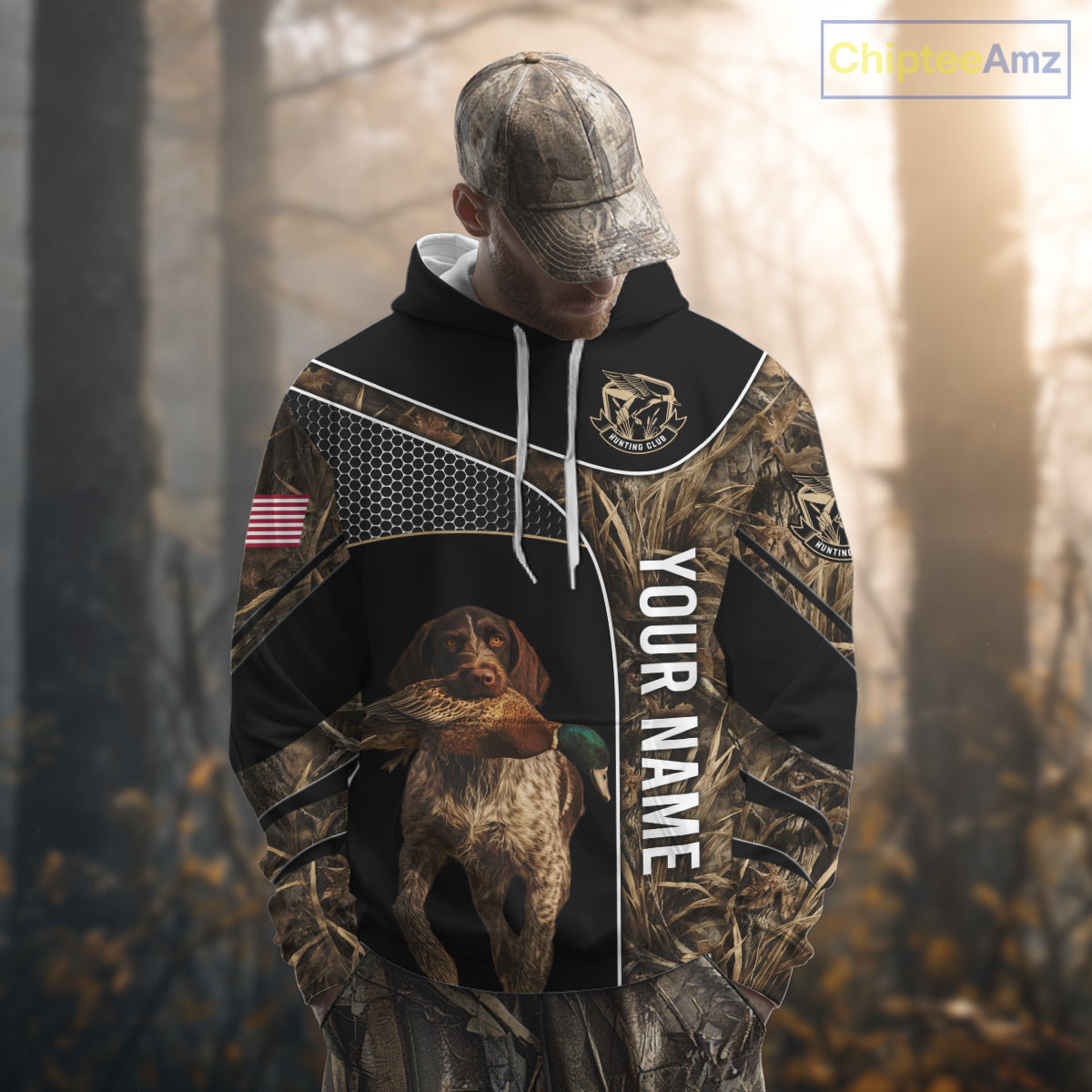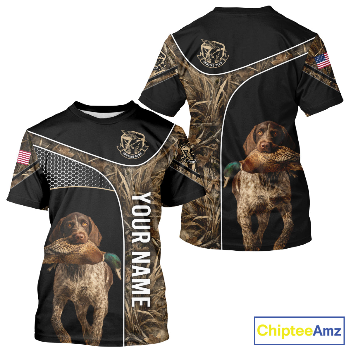 Duck Hunting with German Wirehaired Pointer Dog Camo Custom Name Shirts, Duck Hunting Shirts for Hunter NBT157