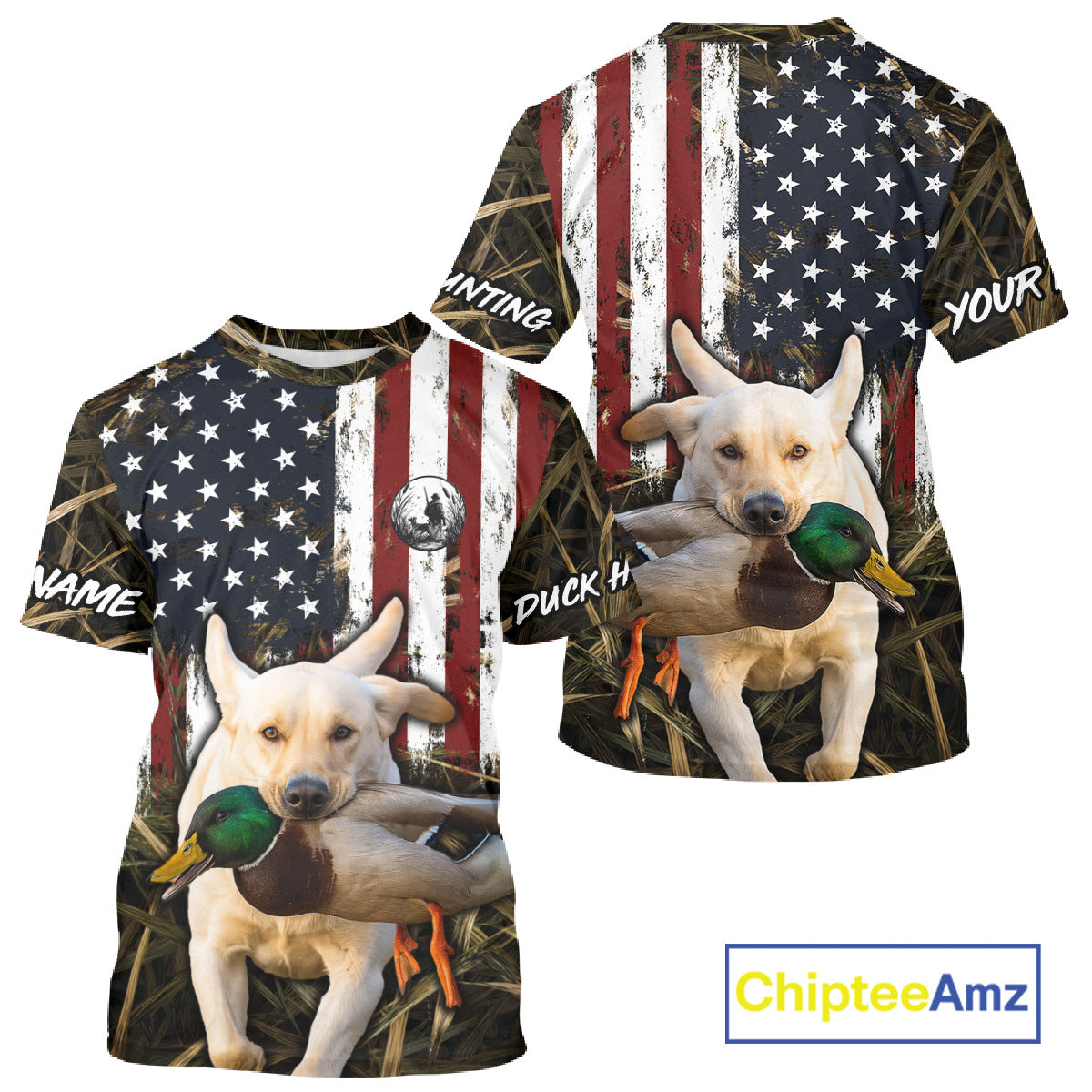 Mallard Duck Hunting Shirt Personalized Camo With Dog Yellow Lab US Flag Hunting Clothes NHT166