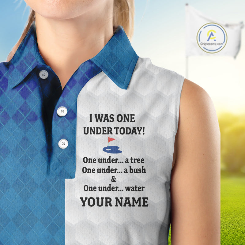 Blue white Womens Sleeveless polo shirt custom I was one under today one under a tree, a bush & water NQS10090