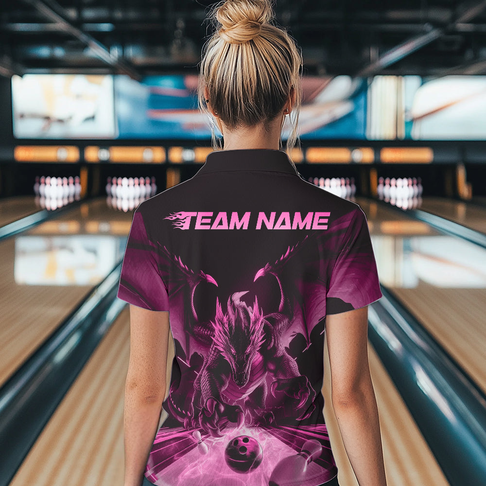 Custom Black And Pink Dragon Bowling Jerseys, Dragon Bowling Team Polo Shirts For Women IPHW8956