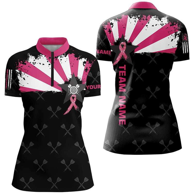 Pink Breast Cancer Awareness Grunge Darts Polo & Quarter-Zip Shirts For Women Custom Darts Jerseys TDM1698