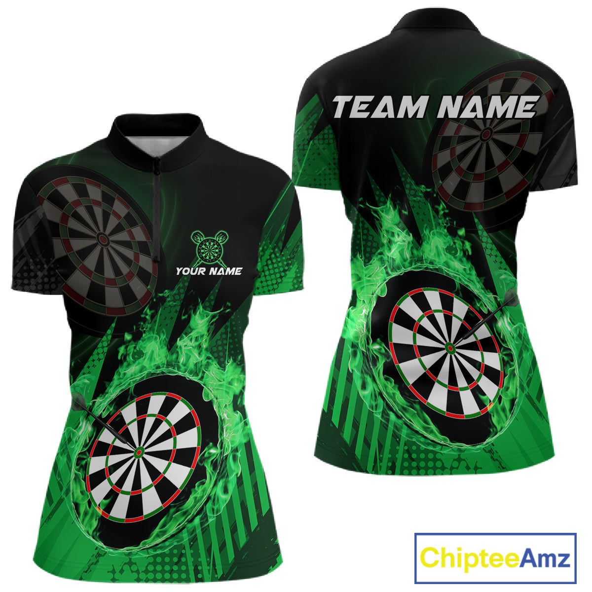 Green Dartboard Fire Flame Darts Shirt For Women Custom Darts Jersey, Dart Team Shirt Polo & 1/4 Zip TDM4799