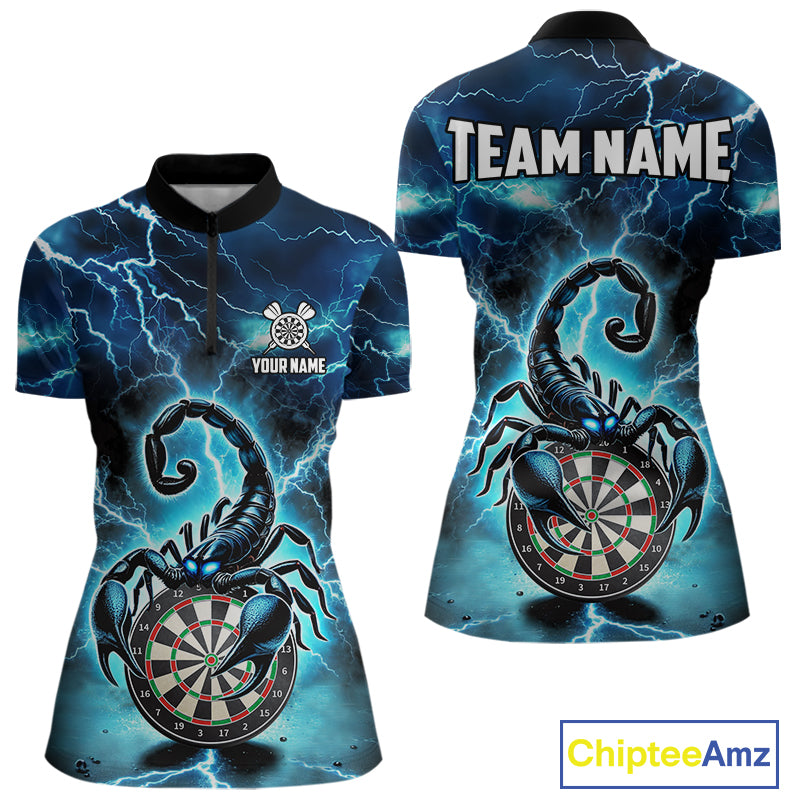 Blue Lightning Thunder Scorpion Darts Shirt Polo & 1/4 Zip For Women Custom Darts League Team Jersey TDM4864