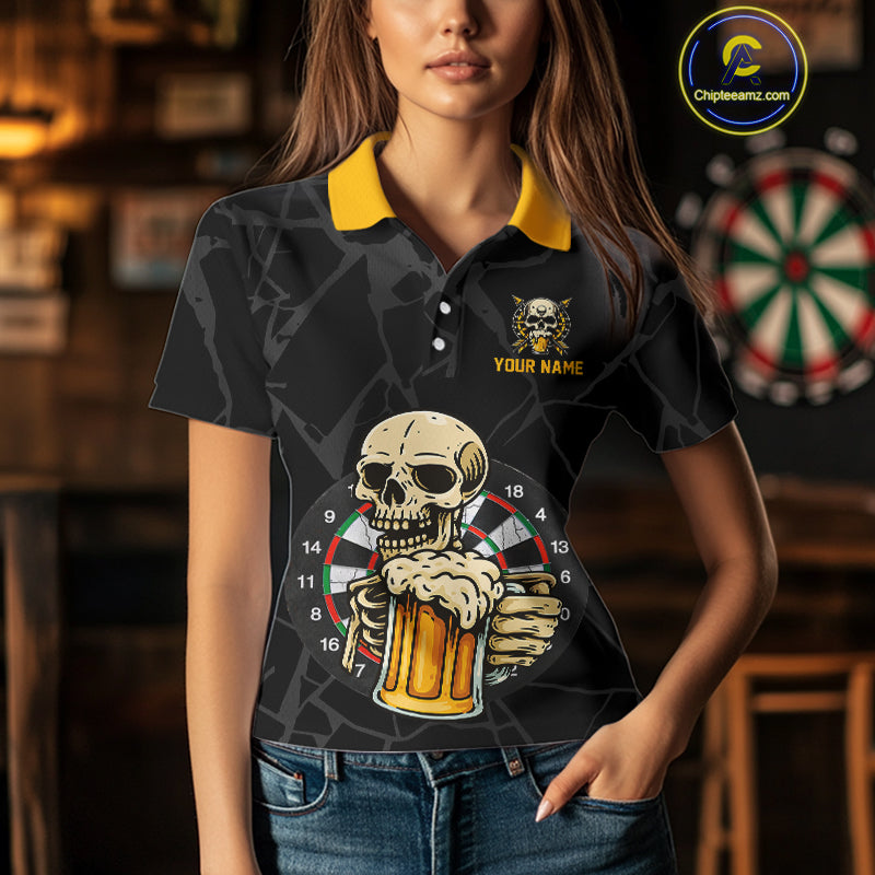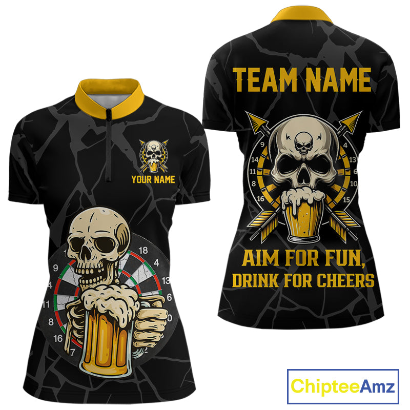 Funny Darts And Beer Aim For Fun Drink For Cheer Custom Skull Dart Shirt For Women, Dart Team Jersey TDM4878