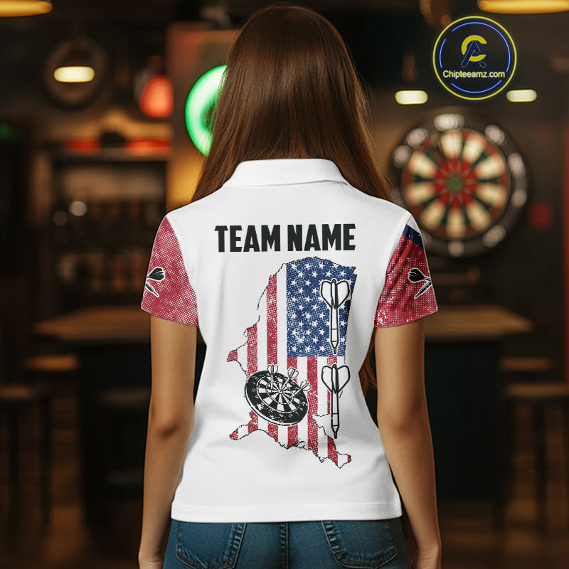 Personalized Grunge American Flag Women's Dart Shirts Custom Patriotic Darts Team Jersey |White TDM4906