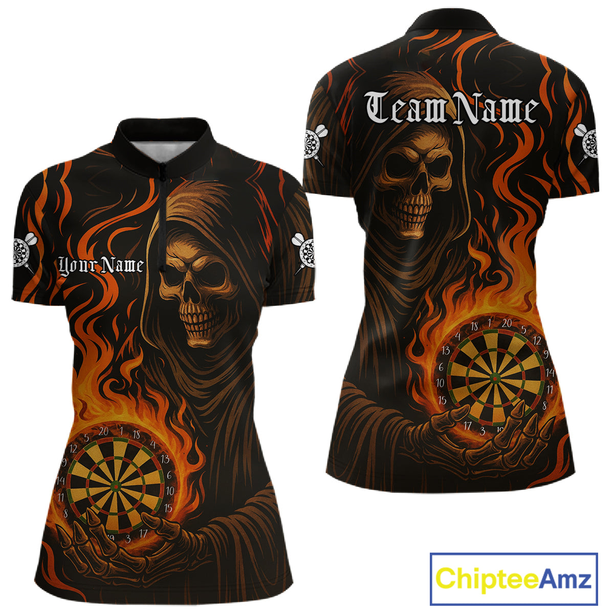 Personalized Flaming Grim Reaper Darts Shirt For Women Custom Dart Jersey Funny Halloween Dart Gift TDM4909
