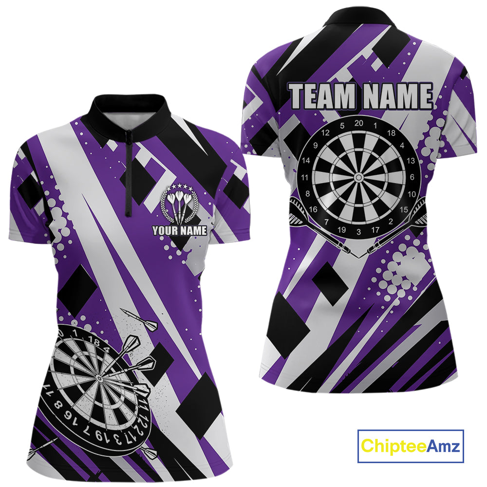 Custom Purple Geometric Darts Polo & Quarter Zip For Women, Darts Team Jersey Outfit TDM5025