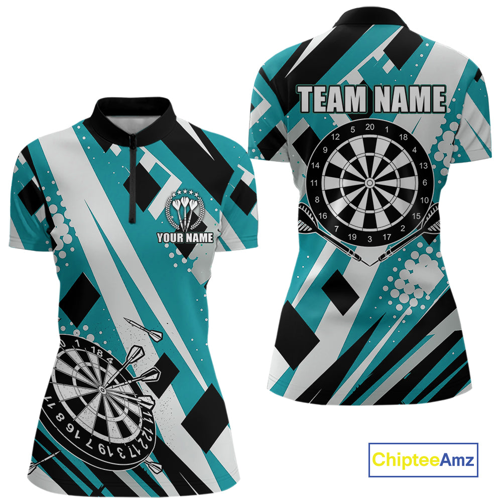 Custom Turquoise Geometric Darts Polo & Quarter Zip For Women, Darts Team Jersey Outfit TDM5027