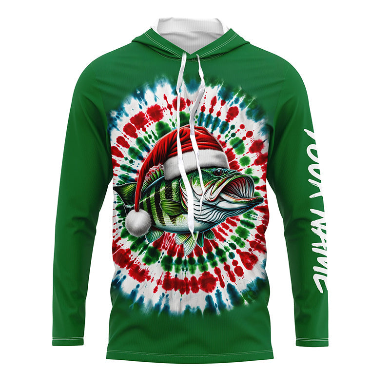 Custom Christmas Bass Fishing Tie Dye Long Sleeve Fishing Shirts, Christmas Bass Fishing Gifts IPHW5588