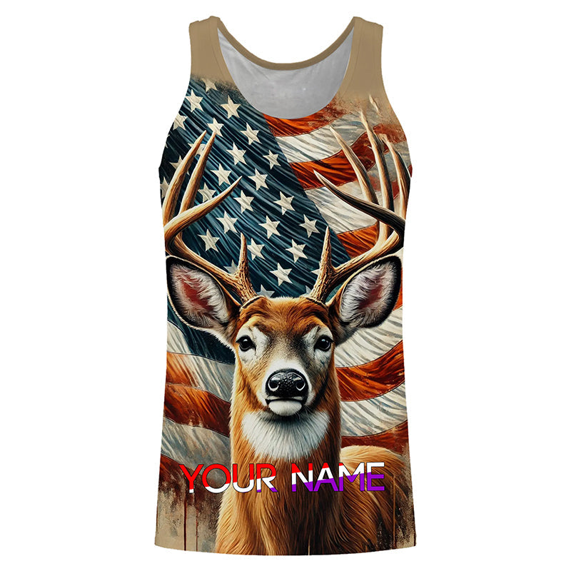 Deer Hunting American flag Custom name Shirts for Hunter, Best Deer Hunting Gifts FSD426