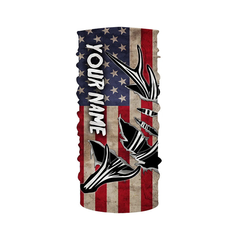 Personalized Deer Hunting American Flag Shirts Customize Name 3D Deer Antler All Over Printed Shirts FSD3398